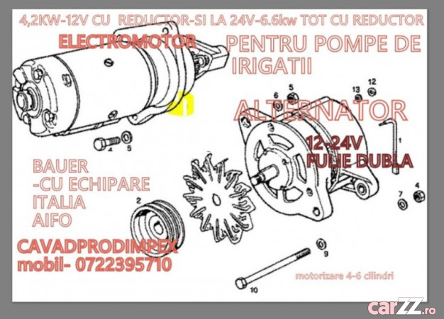 Alternator + Electromotor cu REDUCTOR NOU Pachet AIFO 6 Cilindri Sisteme Irigații Bauer – 12V – Alternator Fulie Dublă 1280 lei + Electromotor 4.2 kW 1595 lei – LIVRARE IMEDIATĂ FAN COURIER + GARANȚIE 12 LUNI!