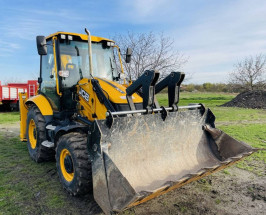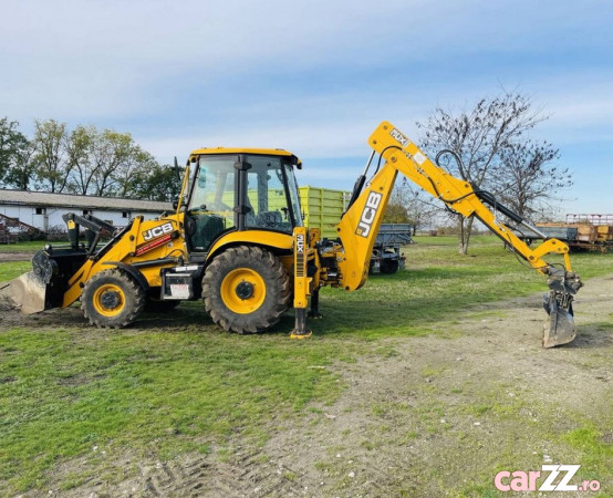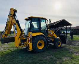 Buldoexcavator, Powershift 40 km/h, tracțiune integrală, 3 cupe, furci pentru paleți, aer condiționat