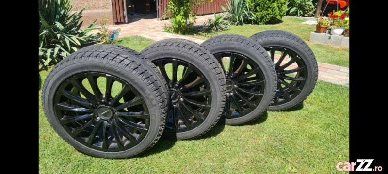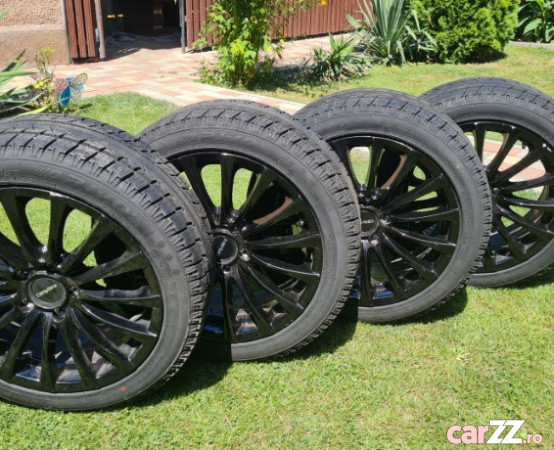 Vând set de 4 jante de aliaj marca Carmani, 17 inch, de culoare neagră, însoțite de anvelope de iarnă Arivo Winmaster ARW1.