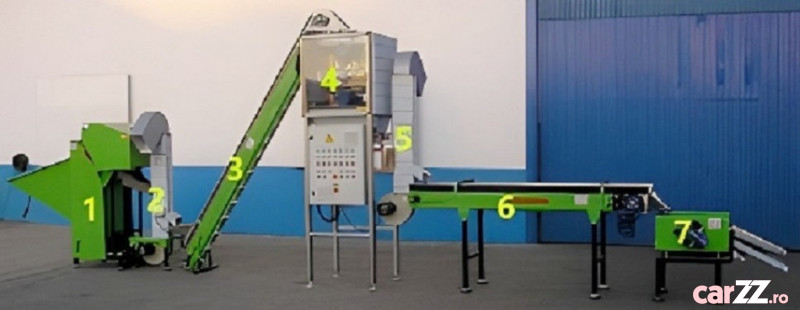 7. Clasificator : pentru separarea celor 4 tipuri de miez: „jumătăți întregi”, „jumătăți parțiale”, „sferturi” și „bucăți mici”; prevăzut cu site vibratoare din PVC perforat, pentru clasificarea pe dimensiuni.