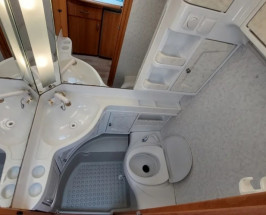 BOILER pentru apa calda , rezervor de apa fix de 40l cu umplere din exterior si indicator de nivel , usa de acces din exterior sub pat si sub bancheta . Cupla stabilizatoare , TRUMA DUOMATIC L PLUS . Set 2 regulatoare de presiune a gazului cu comutare automată și afișaj de la distanță pentru sistem cu două butelii , manivela , iluminat cu LED-uri , detector CO2 si FUM . Portbagaj pentru barca gonflabila cu scara de urcare pe rulota ,scarita….etc .