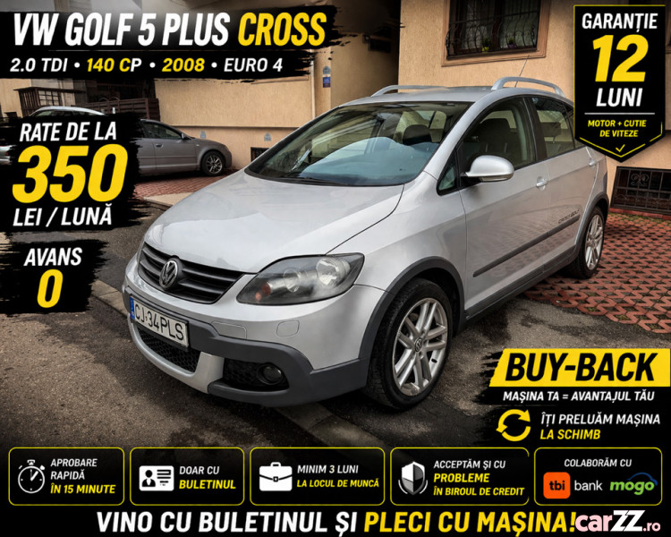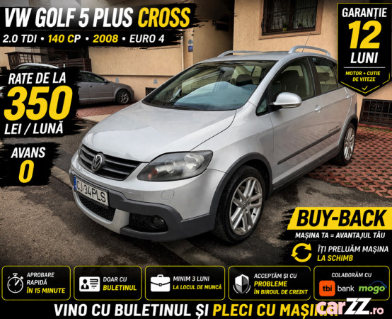Model Volkswagen Golf 5 Plus CROSS, apreciat pentru poziția de condus mai înaltă, confort și fiabilitate.